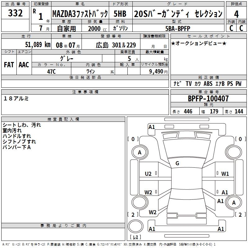 MAZDA 3 FASTBACK 20S BAR GUN TI SELECTION - лот 332