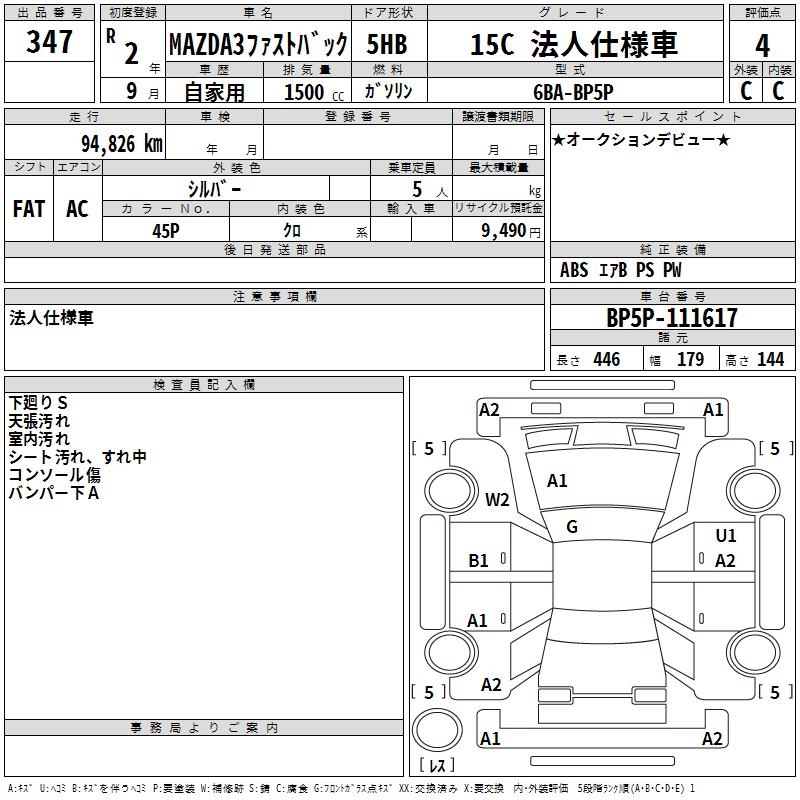 MAZDA 3 FASTBACK 15C HOWE JIN USE CAR - лот 347