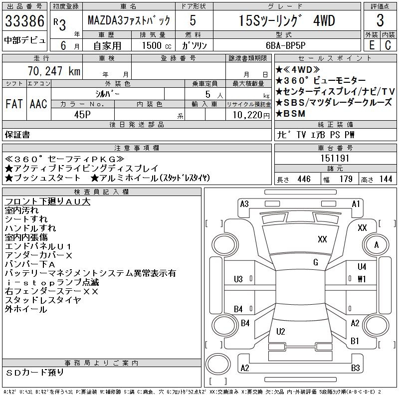 MAZDA 3 FASTBACK 15S TOURING 4WD - лот 33386
