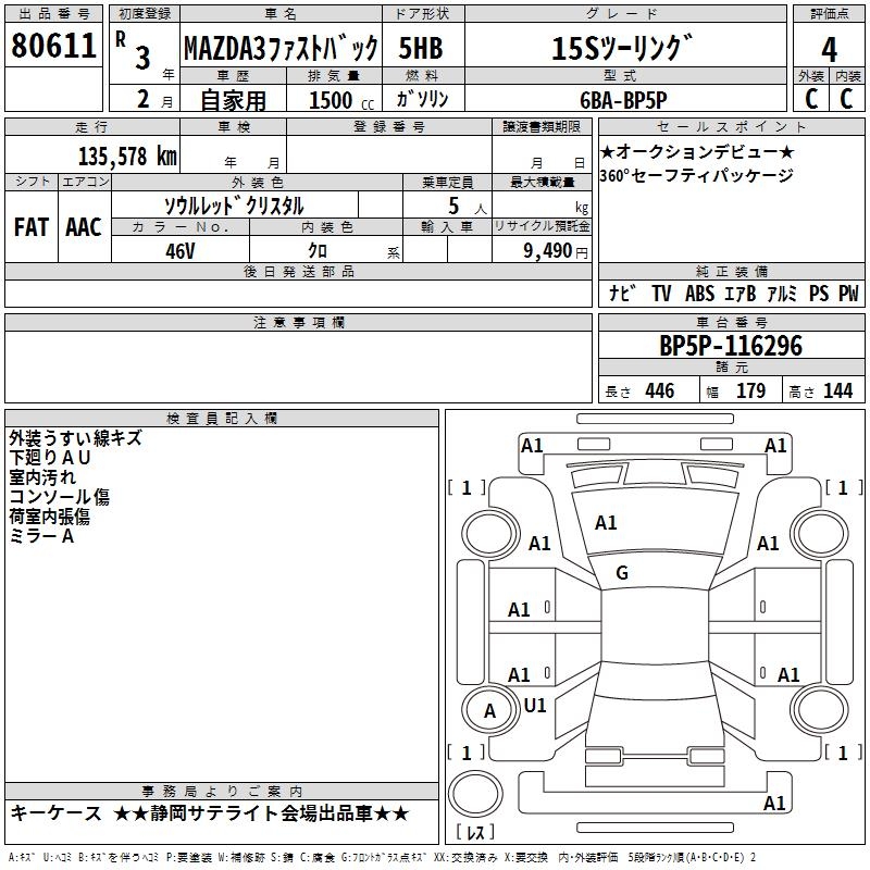 MAZDA 3 FASTBACK 15S TOURING - лот 80611