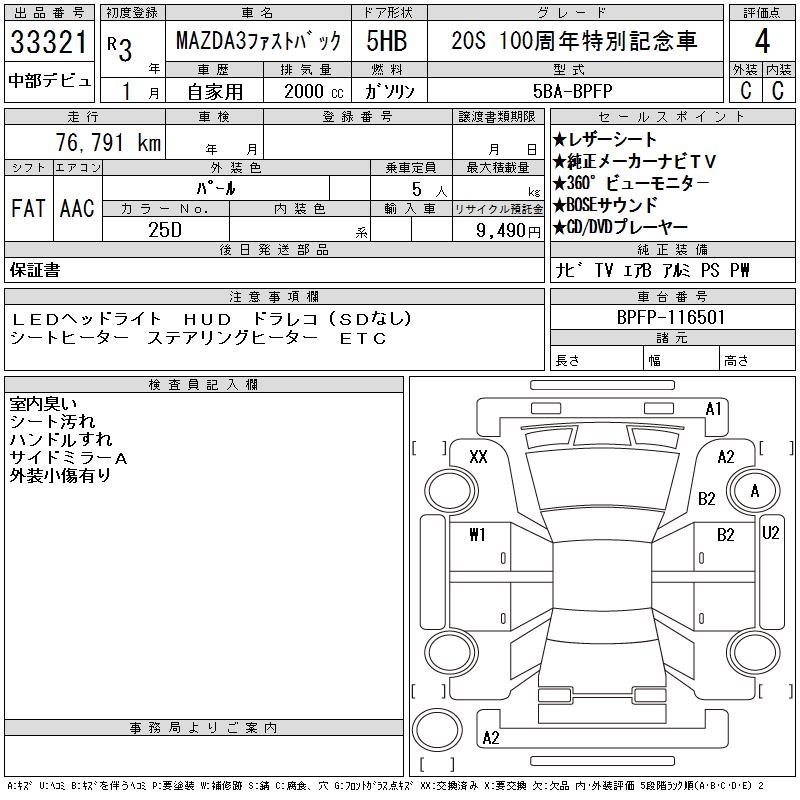 MAZDA 3 FASTBACK 20S 100th - лот 33321