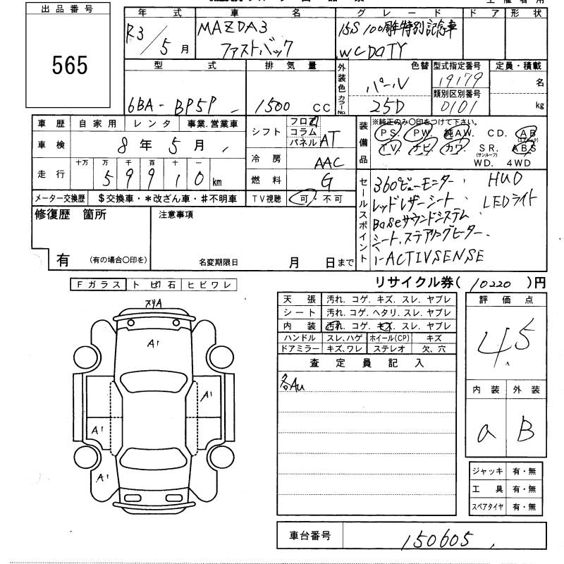 MAZDA 3 FASTBACK 15S 100 ANNIVERSARY SPECIAL MEMORY - лот 565