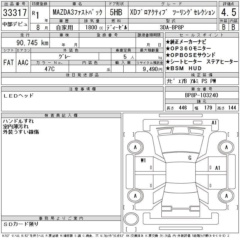 MAZDA 3 FASTBACK XD PRO ACTIVE TOURING SELECTION - лот 33317