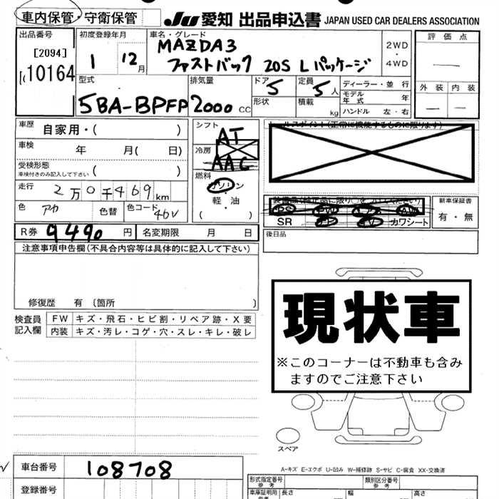 MAZDA 3 20S L PACKAGE - лот 10164