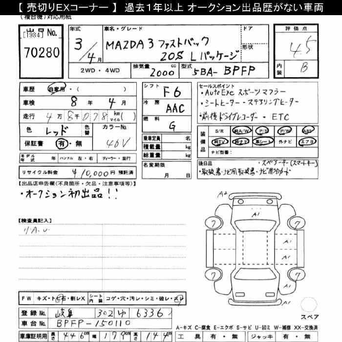 MAZDA 3 20S L PACKAGE - лот 70280