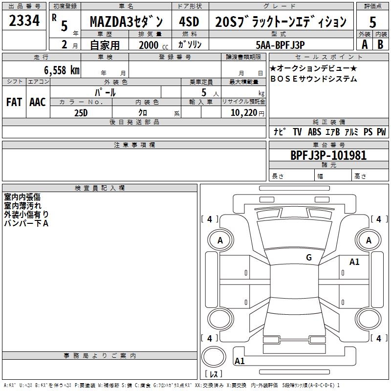 MAZDA 3 20S BLACK TONE EDITION - лот 2334