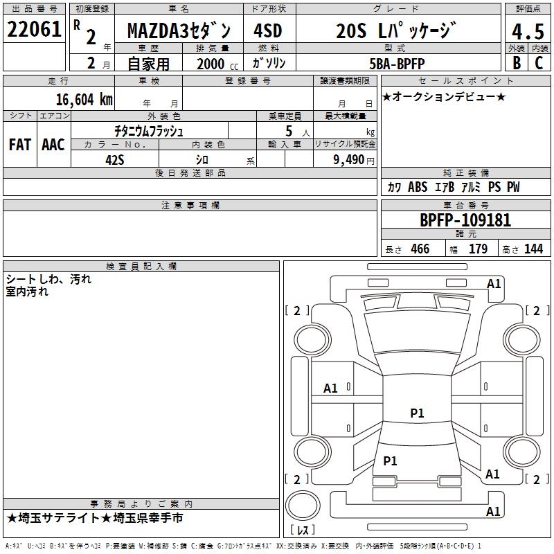 MAZDA 3 20S L PACKAGE - лот 22061