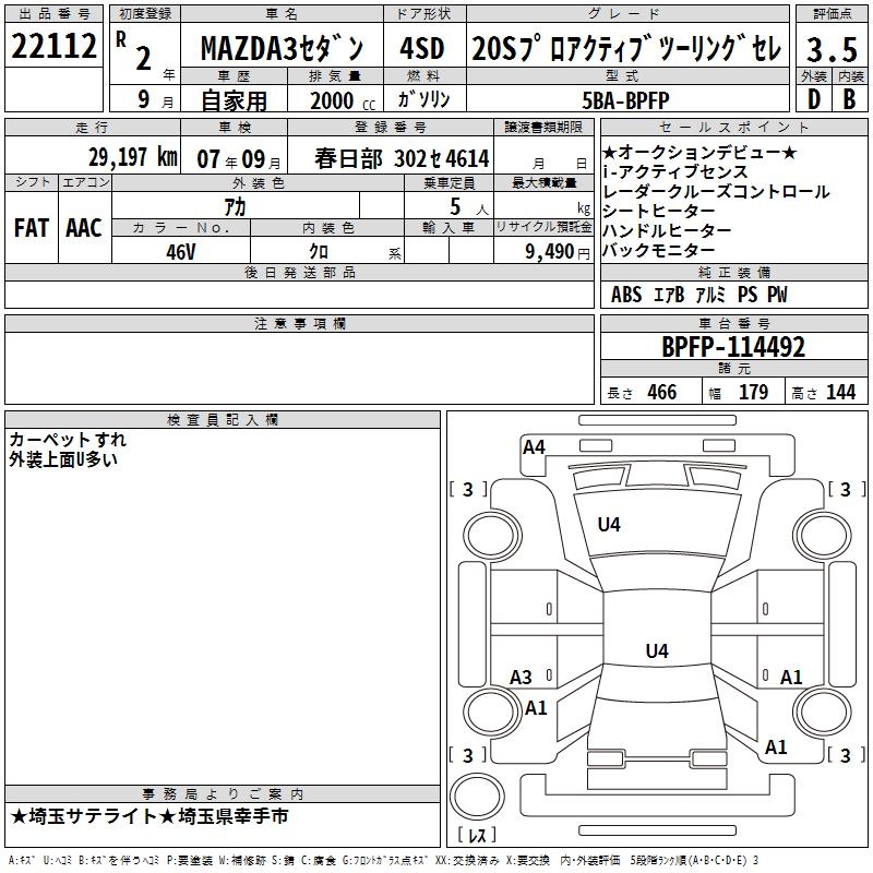 MAZDA 3 20S PRO ACTIVE TOURING SELECTION - лот 22112