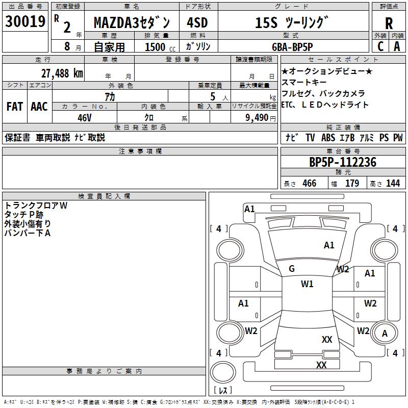 MAZDA 3 15S TOURING - лот 30019