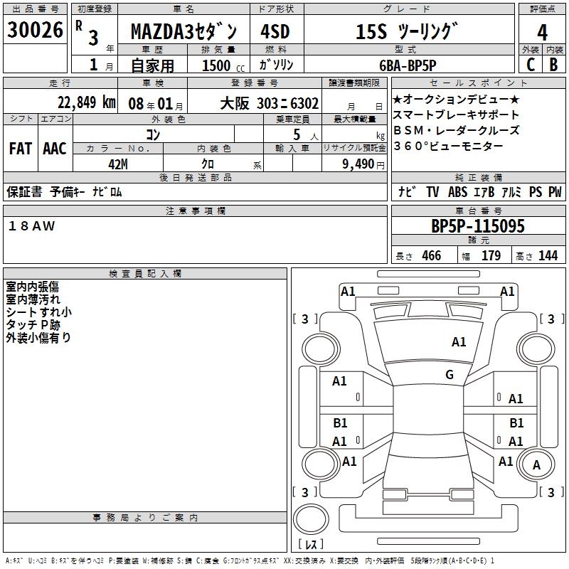 MAZDA 3 15S TOURING - лот 30026