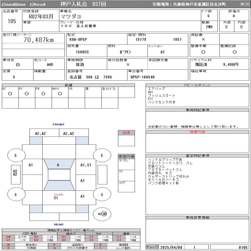 MAZDA 3 15C JURIDICAL PERSON SPECIFICATION CAR - лот 105