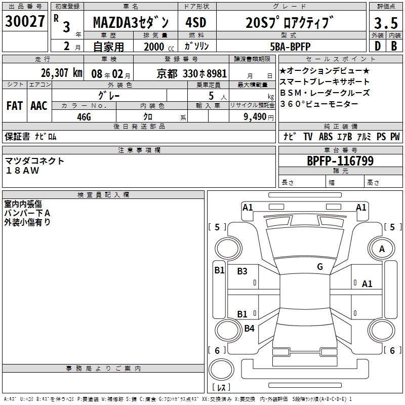 MAZDA 3 20S PRO ACTIVE - лот 30027