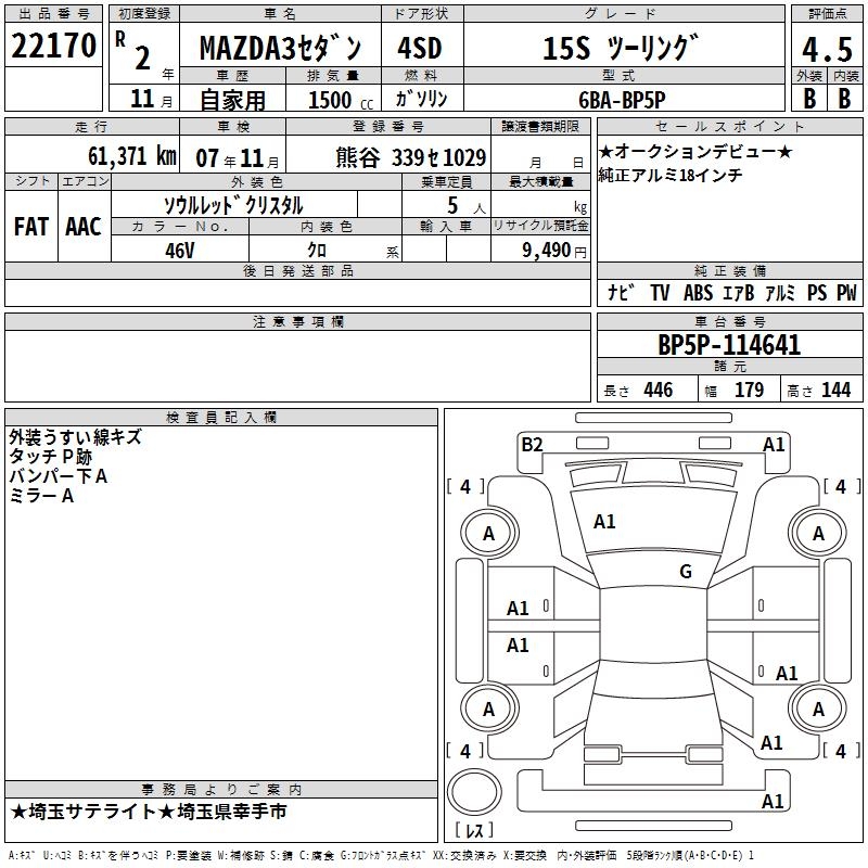MAZDA 3 15S TOURING - лот 22170