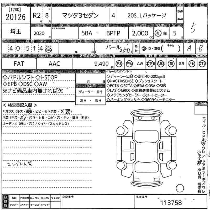 MAZDA 3 20S_L PACKAGE - лот 20126