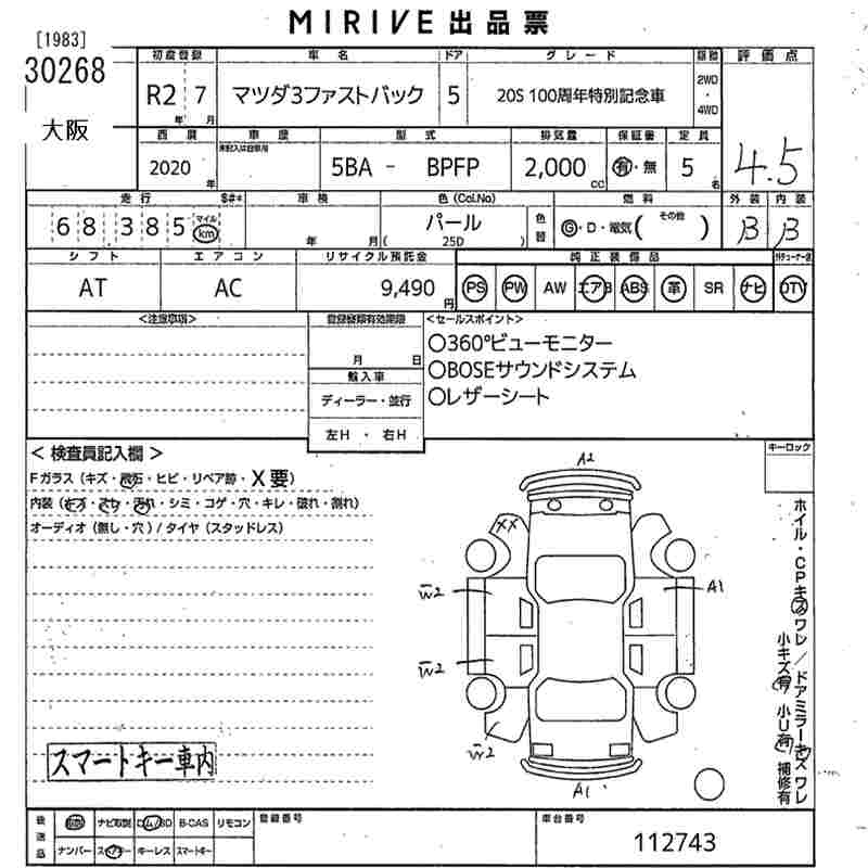 MAZDA 3 20S100 ANNYVERSARY SPECIAL MEMORY CAR - лот 30268