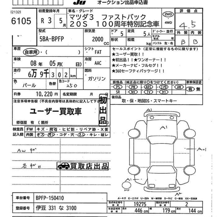 MAZDA 3 20S 100TH MEMORY CAR - лот 6105