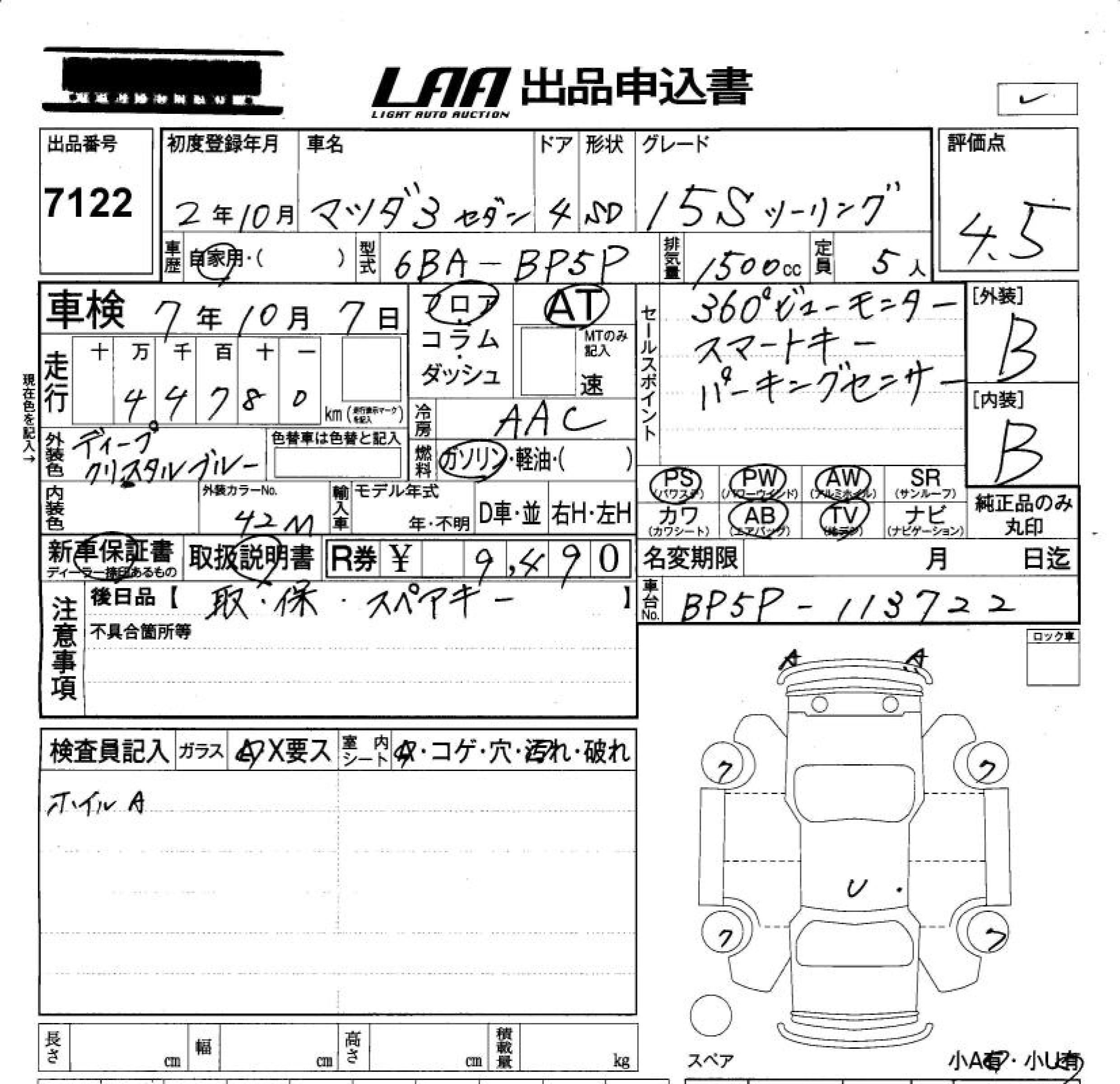 MAZDA 3 15S TOURING - лот 7122