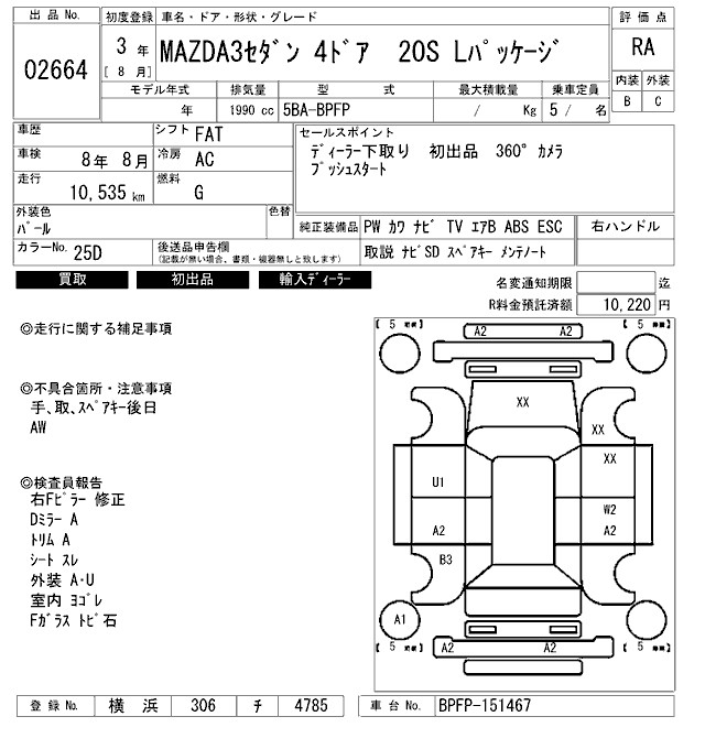 MAZDA 3 20S L PACKAGE - лот 2664