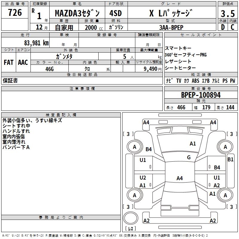 MAZDA 3 X L PACKAGE - лот 726
