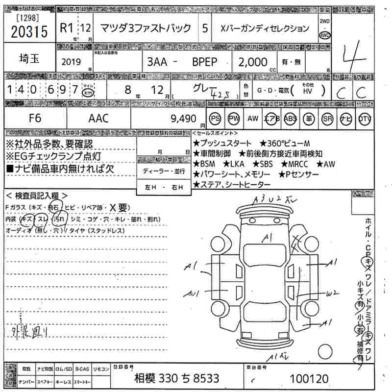 MAZDA 3 4WD_X BAR GUN TI SELECTION - лот 20315