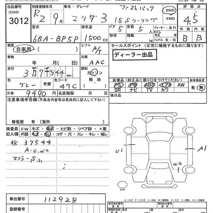 MAZDA 3 15S TOURING - лот 3012