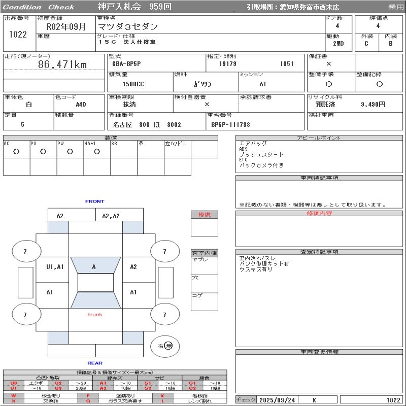 MAZDA 3 15C JURIDICAL PERSON SPECIFICATION CAR - лот 1022