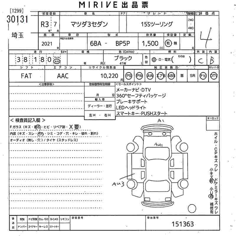 MAZDA 3 15S TOURING - лот 30131