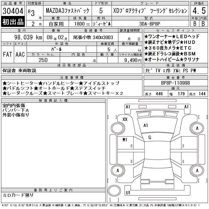 MAZDA 3 FASTBACK - лот 30404