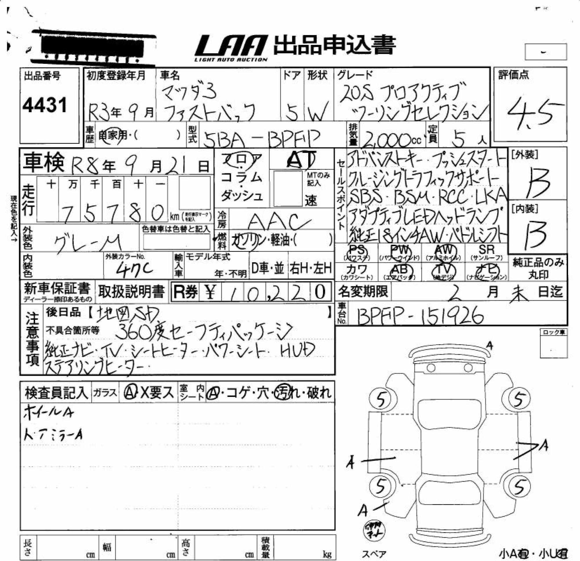 MAZDA 3 FASTBACK - лот 4431