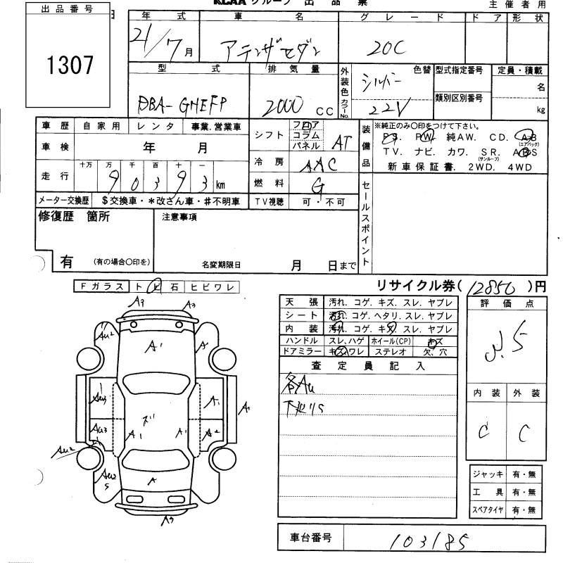 MAZDA ATENZA SEDAN - лот 1307