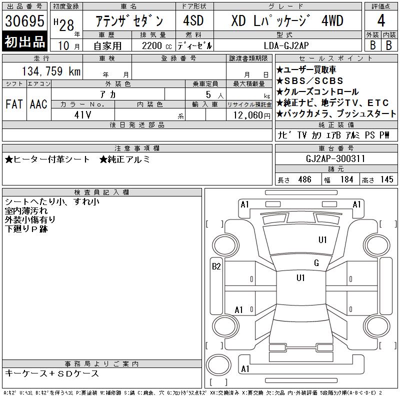 MAZDA ATENZA SEDAN XD L PACKAGE 4WD - лот 30695