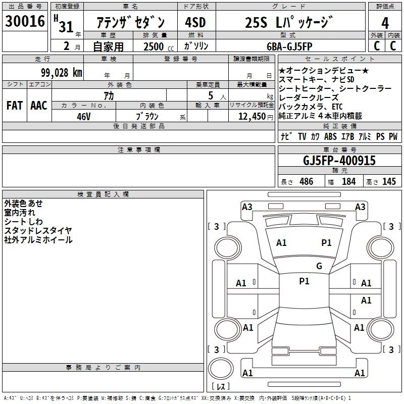 MAZDA ATENZA SEDAN 25S L PACKAGE - лот 30016
