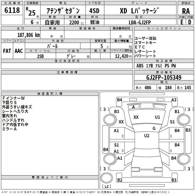 MAZDA ATENZA SEDAN XD L PACKAGE - лот 6118