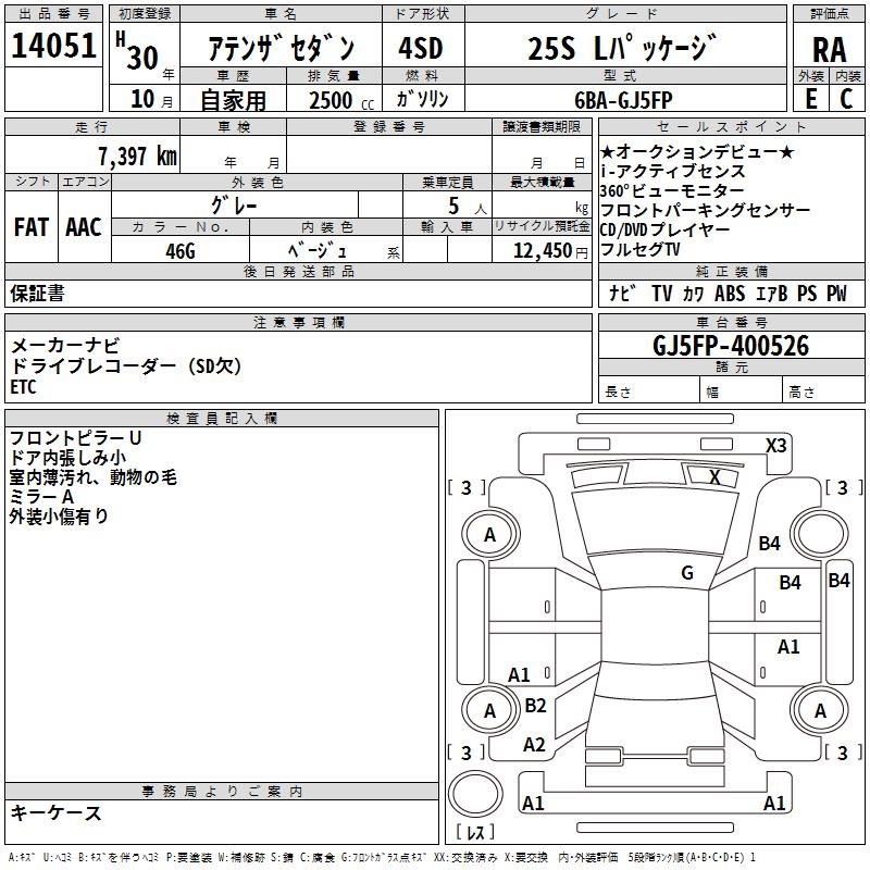MAZDA ATENZA SEDAN 25S L PACKAGE - лот 14051