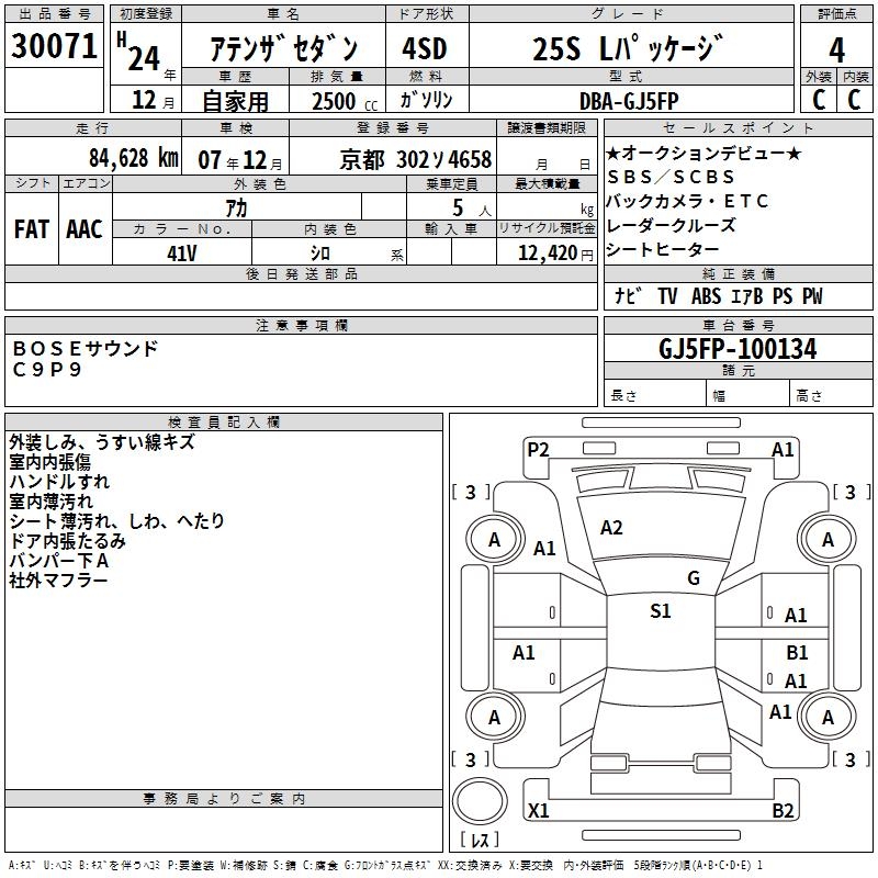 MAZDA ATENZA SEDAN 25S L PACKAGE - лот 30071