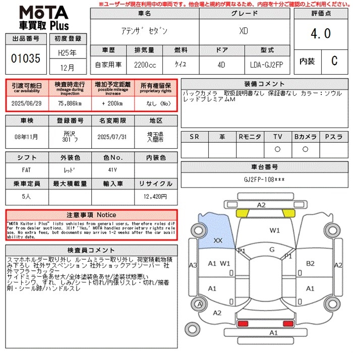 MAZDA ATENZA SEDAN XD - лот 1035