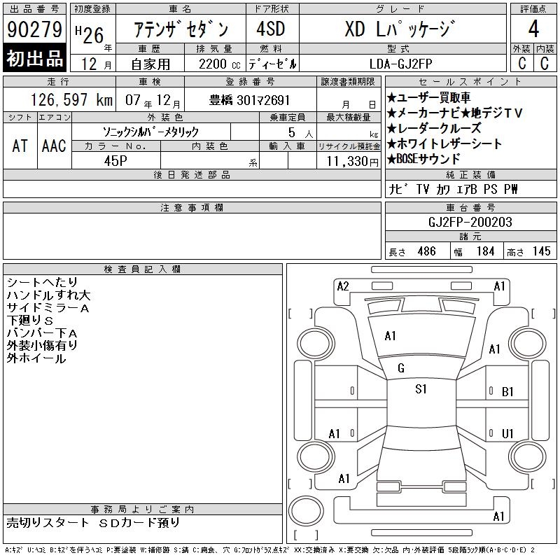 MAZDA ATENZA SEDAN XD L PACKAGE - лот 90279