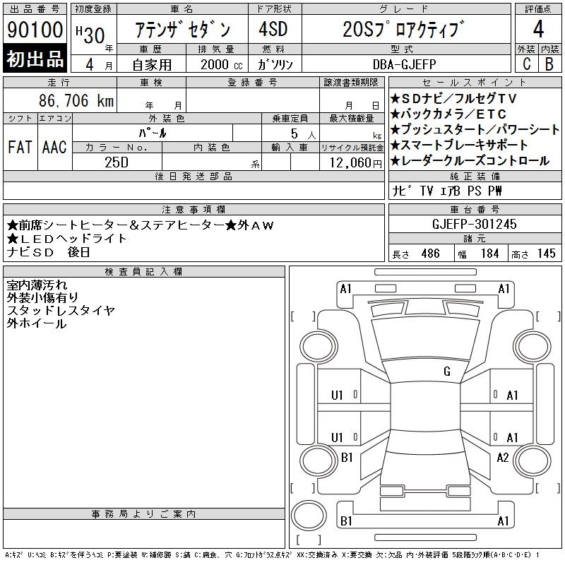 MAZDA ATENZA SEDAN 20S PRO ACTIVE - лот 90100