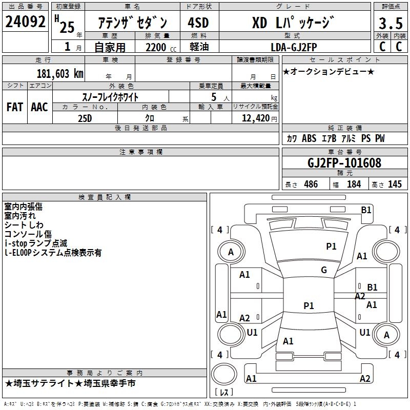MAZDA ATENZA SEDAN XD L PACKAGE - лот 24092