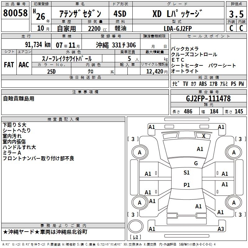 MAZDA ATENZA SEDAN XD L PACKAGE - лот 80058