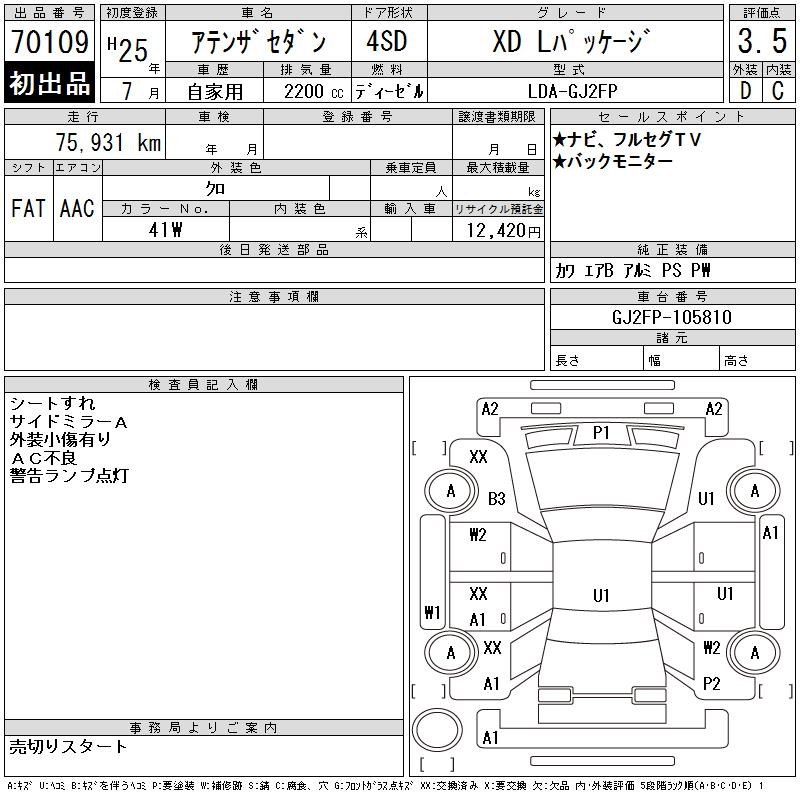 MAZDA ATENZA SEDAN XD L PACKAGE - лот 70109