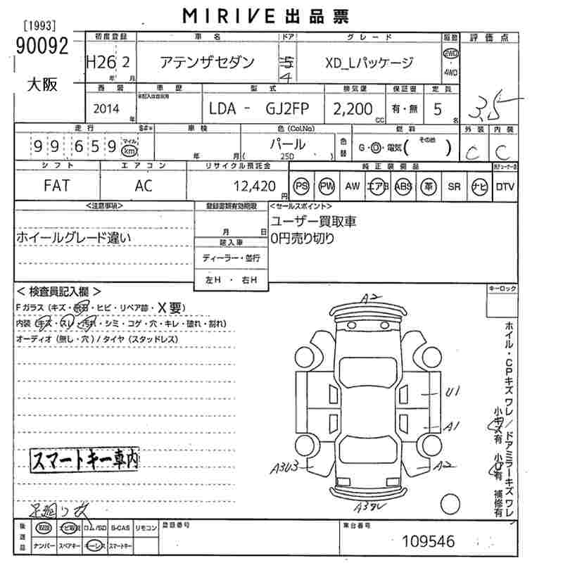 MAZDA ATENZA SEDAN XD_L PACKAGE - лот 90092