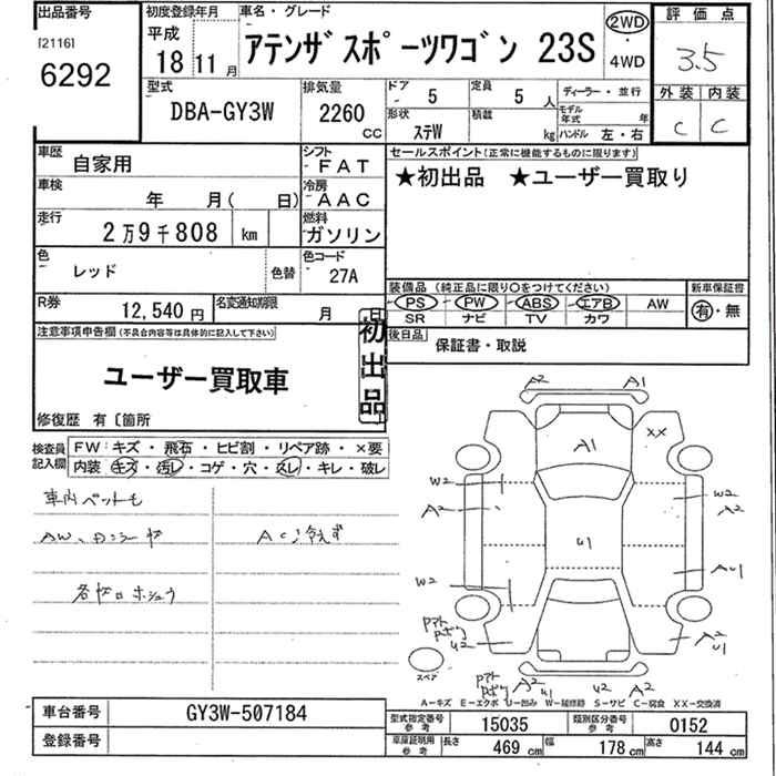MAZDA ATENZA SPORT WAGON 23S - лот 6292