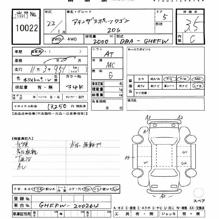 MAZDA ATENZA SPORT WAGON 20S - лот 10022