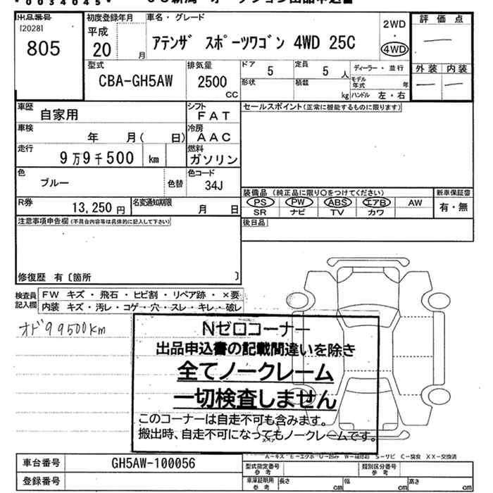 MAZDA ATENZA SPORT WAGON 4WD 25C - лот 805