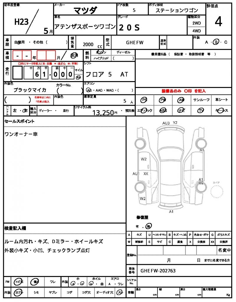 MAZDA ATENZA SPORT WAGON - лот 10951