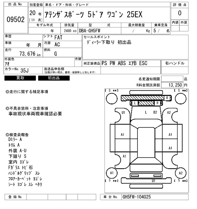 MAZDA ATENZA SPORT 25EX - лот 9502
