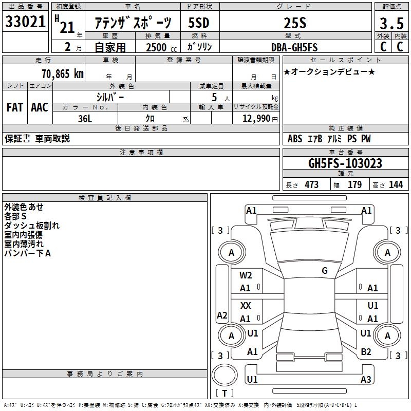 MAZDA ATENZA SPORT - лот 33021