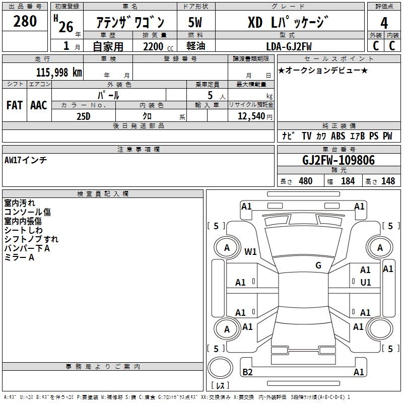 MAZDA ATENZA WAGON XD L PACKAGE - лот 280