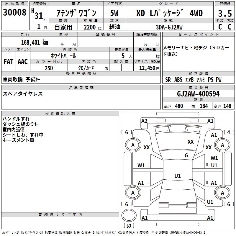 MAZDA ATENZA WAGON XD L PACKAGE 4WD - лот 30008